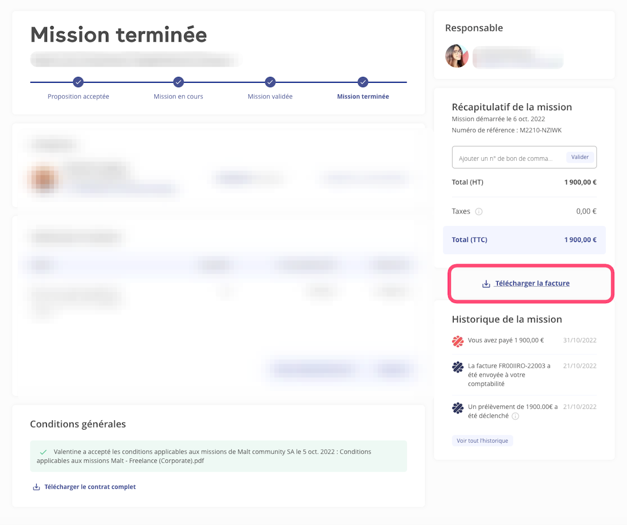 Pour information, une troisième facture est éditée à l’adresse du freelance pour la commission Malt dans les pays où une commission est prélevée.