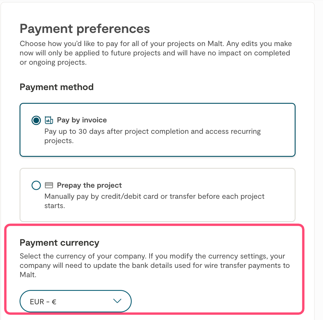 Let op: als je per bankoverschrijving betaalt, zorg er dan voor dat je de IBAN van Malt hebt gewijzigd. We hebben namelijk één IBAN per valuta.