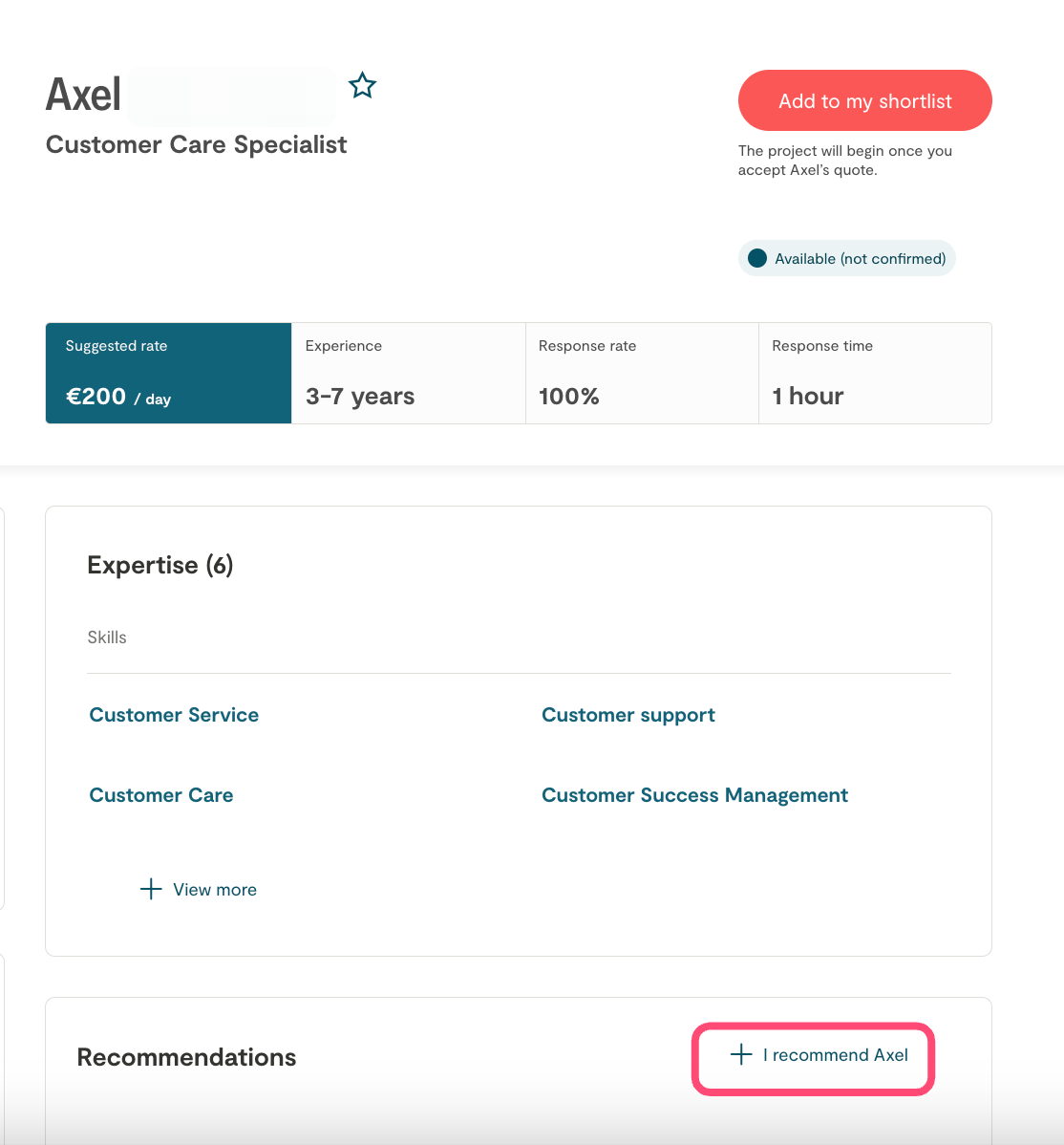 Aanbevelingen zijn een uitstekende manier voor freelancers om projectleiders gerust te stellen. Wanneer een freelancer om een externe aanbeveling vraagt, ontvang je een e-mailverzoek van de freelancer. Je hoeft alleen maar op de link te klikken om het proces te starten.