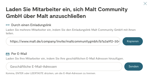 Sie haben die Möglichkeit, Mitarbeiter in Ihr Team auf Malt einzuladen.
